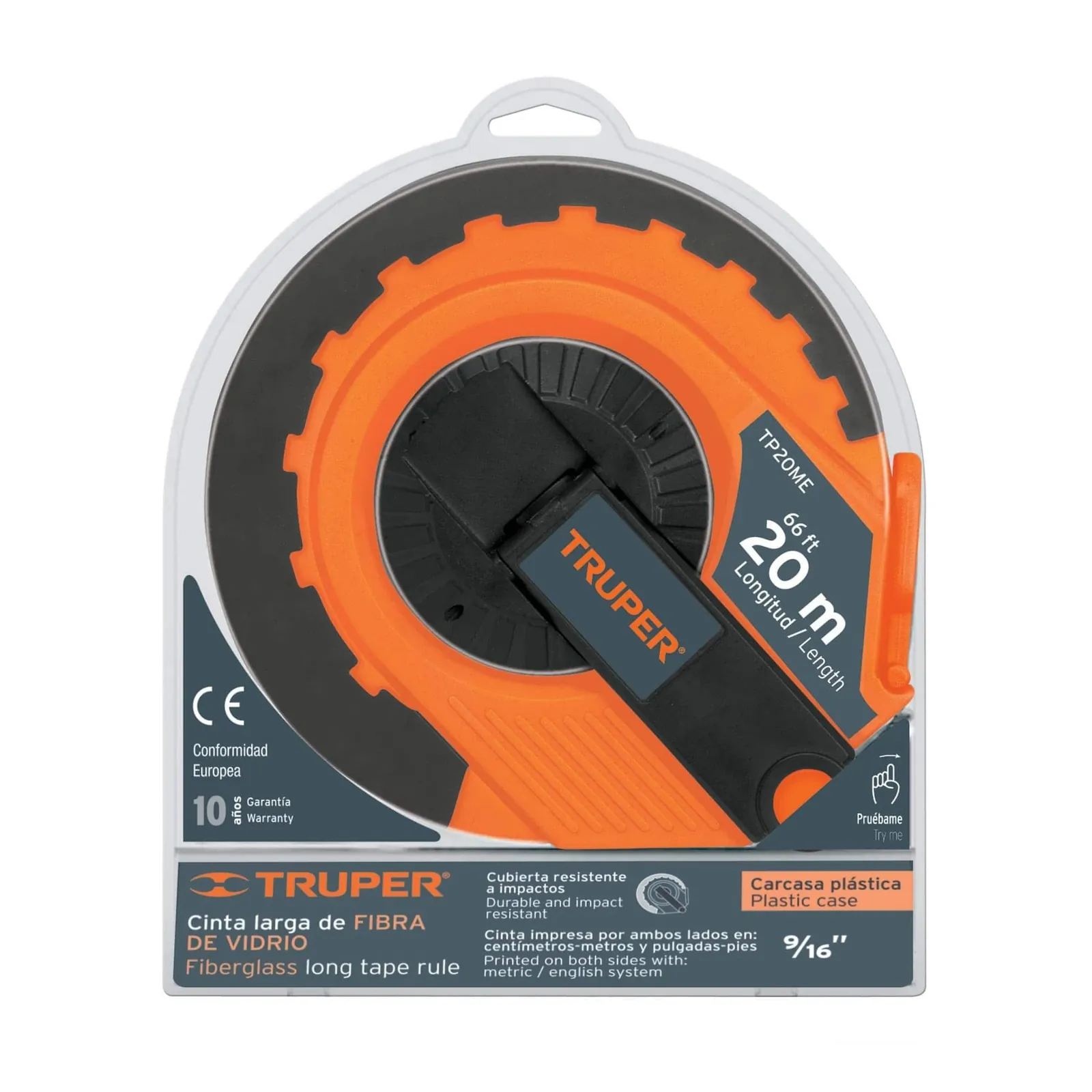 La cinta larga Truper de 20 metros TP20ME (Código: 12638) está diseñada para ofrecer mediciones precisas y durabilidad en trabajos exigentes. Fabricada con fibra de vidrio recubierta de PVC, permite su uso en condiciones húmedas, ya que puede mojarse sin dañarse y limpiarse fácilmente.