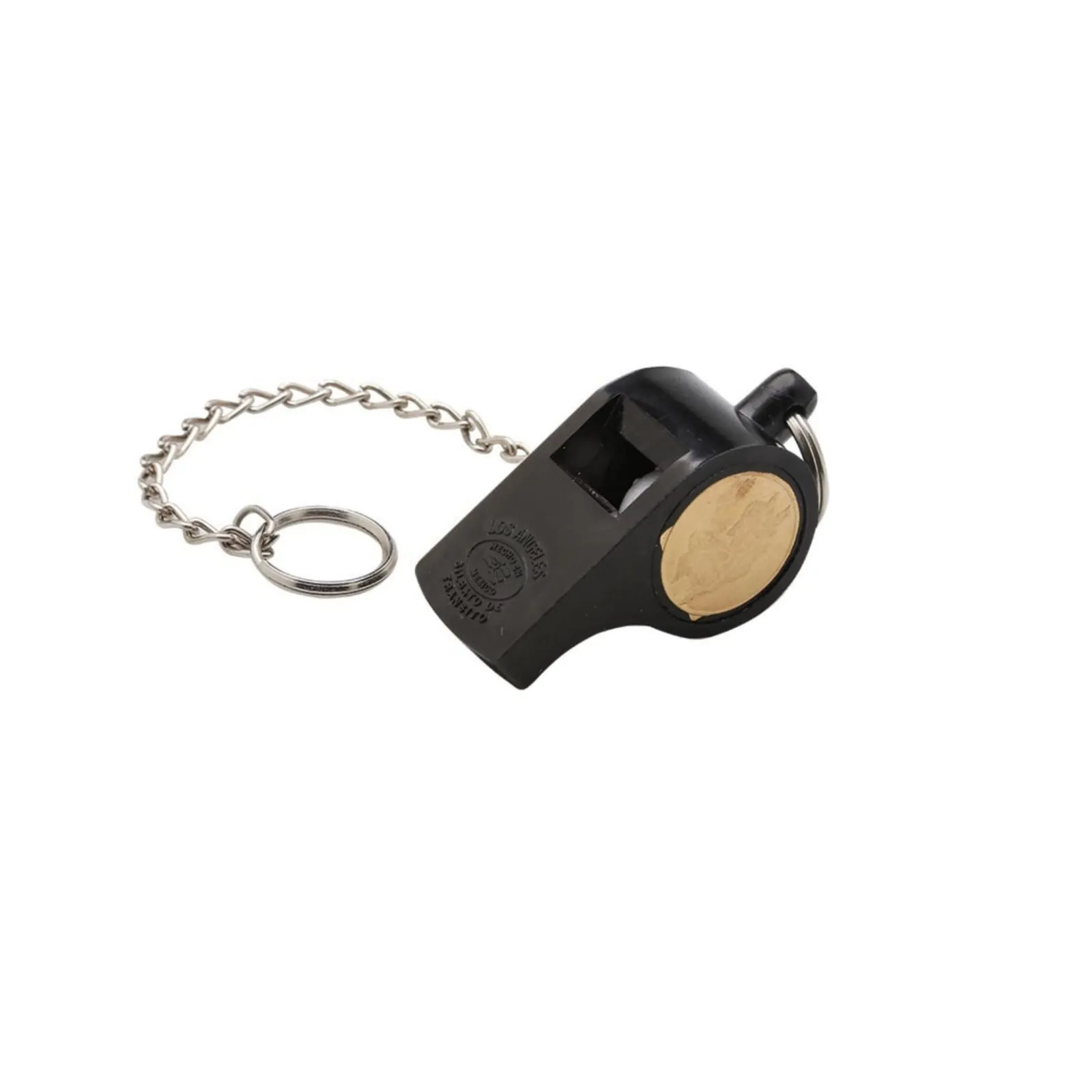Silbato para tránsito con cadena, ideal para programas de seguridad como “Vecinos Vigilantes”. Fabricado en baquelita termofija de alta calidad, ofrece resistencia y durabilidad para uso constante.